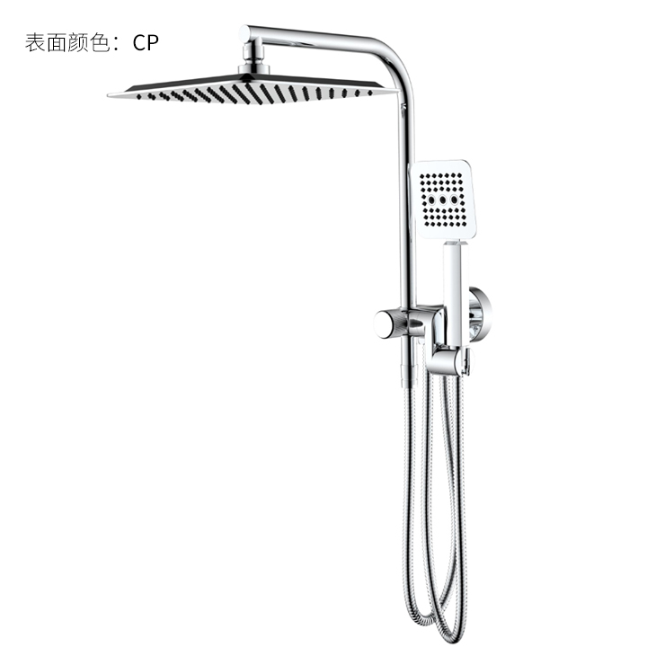 Square wide top spray; Z-shaped tee; Press to switch top spray/shower water